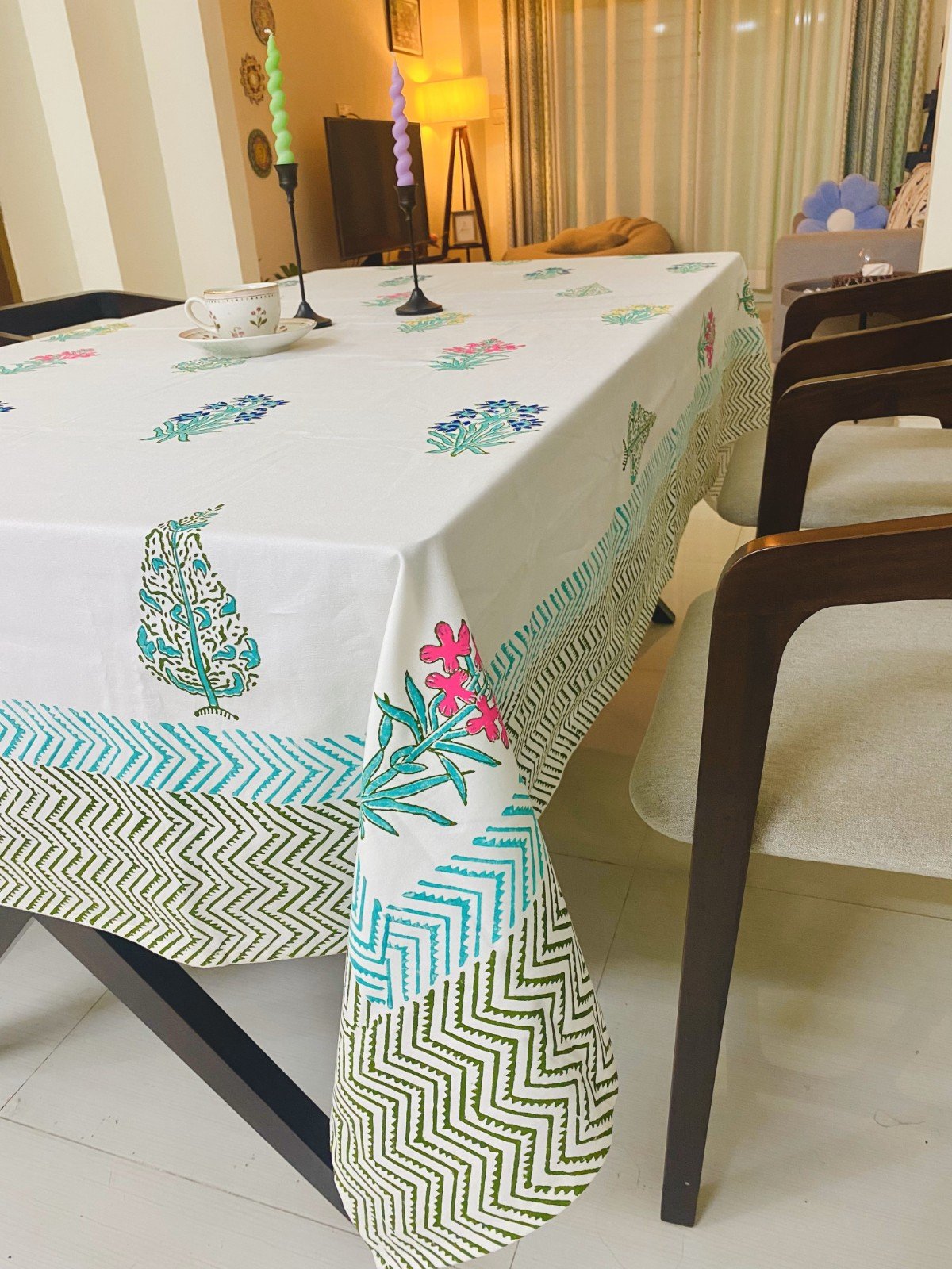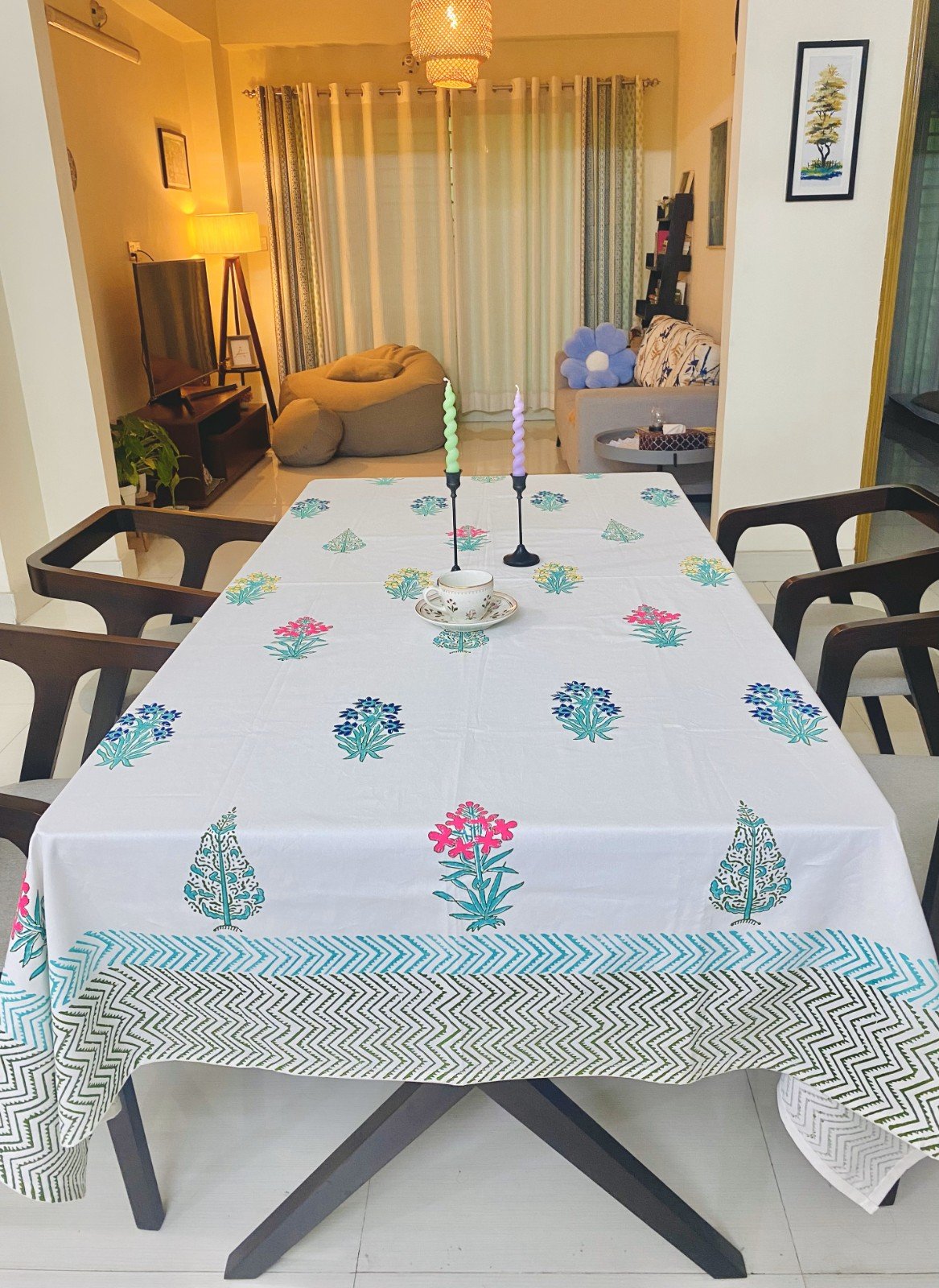 White Premium Hand block Table Cloth